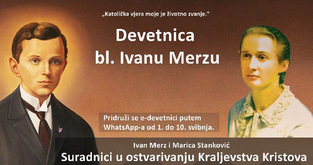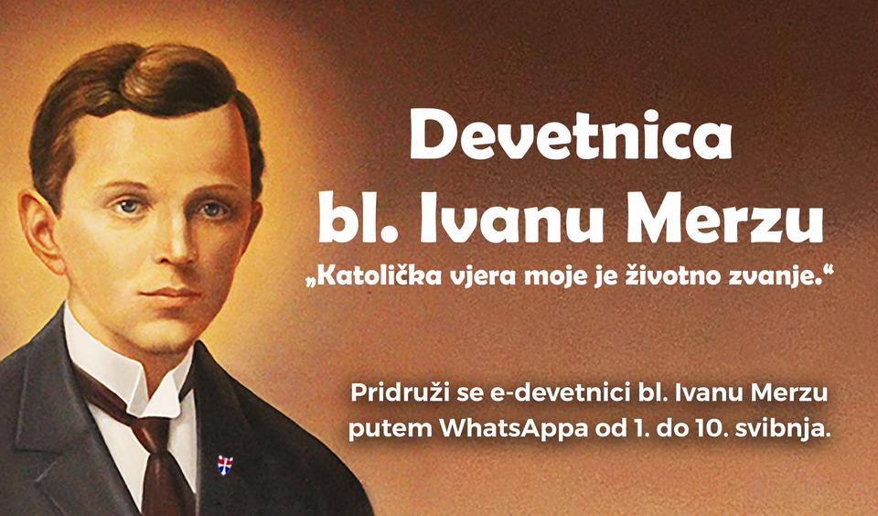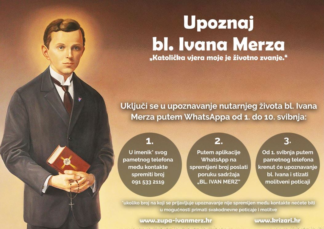 Ohrabreni jako lijepim odazivom molitelja te dobrom suradnjom u organizaciji prošlogodišnje e-devetnice bl. Ivanu Merzu, i ove godine se u zajedništvu župe bl. Ivana Merza iz Španskog u Zagrebu i Križara organizira devetodnevni hod i upoznavanje bl. Ivana Merza. Svakog dana od 1. do 10. svibnja putem WhatsApp aplikacije na pametnom telefonu svi prijavljeni će se upoznavati s nutarnjim životom bl. Ivana i primat će njegove molitvene poticaje. Nastavi čitati “Upoznaj nutarnji život bl. Ivana Merza putem WhatsAppa”