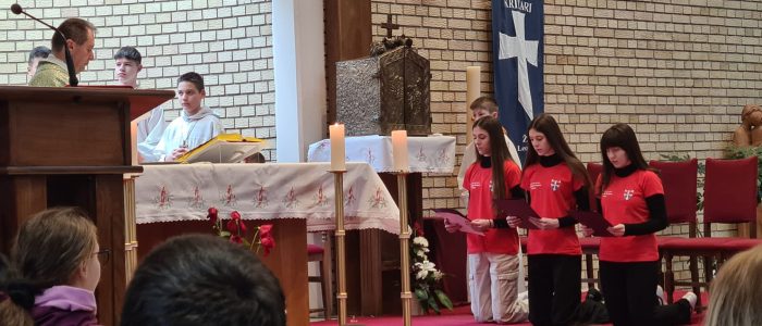 Misno slavlje tijekom kojeg je Križarsko društvo „bl. Alojzije Stepinac“ postalo bogatije za tri nove članice, predvodio je župnik Jozo Jurić. Posluživao je trajni đakon Ivo Grbeš.